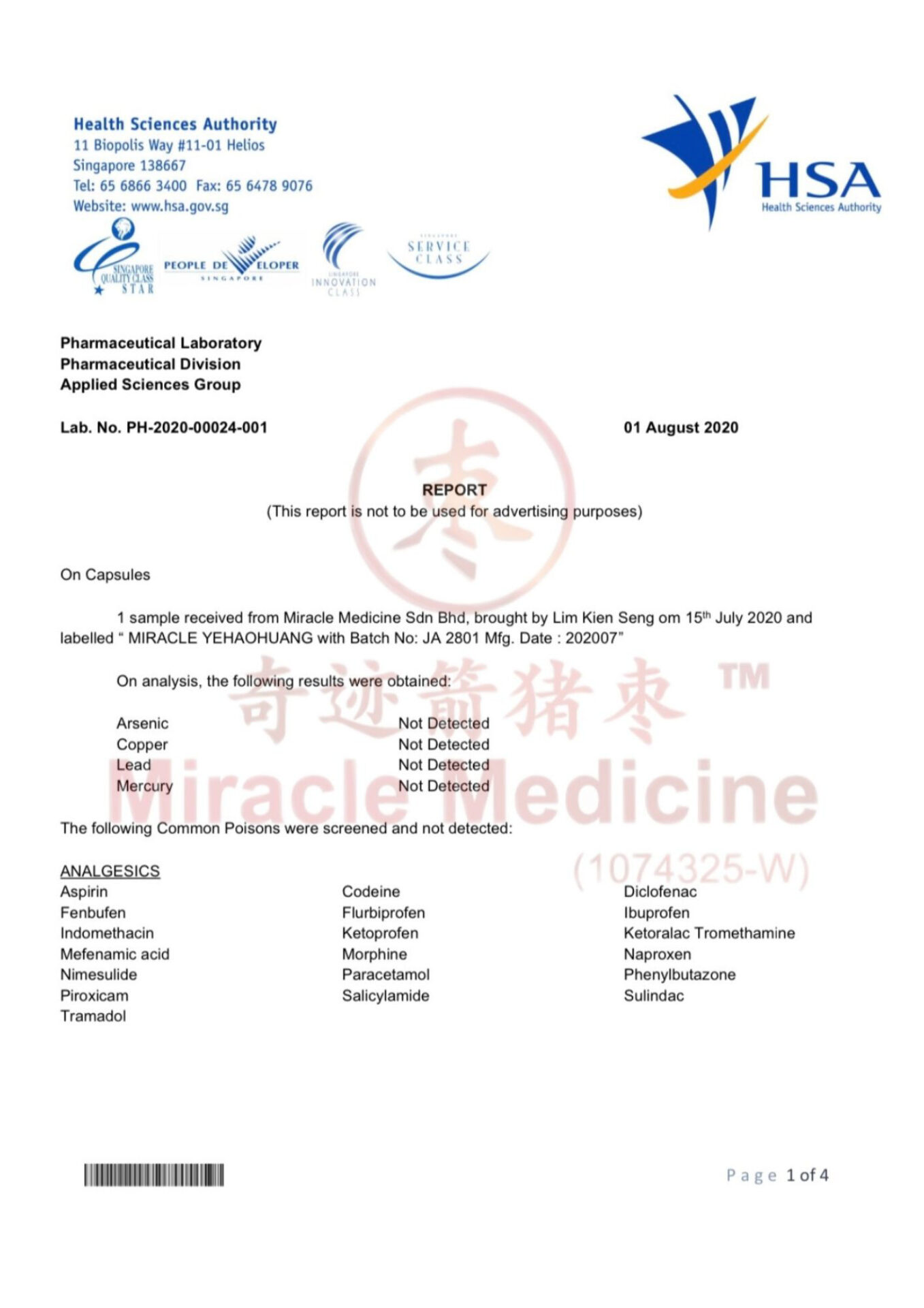 Each batch is tested for heavy metals, microorganisms, and other quality indicators.