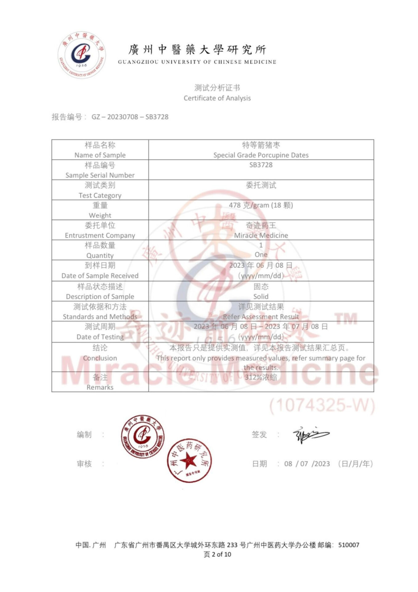 At Miracle Medicine, we collaborate with Guangzhou University of Chinese Medicine to advance scientific insight into porcupine date materials.